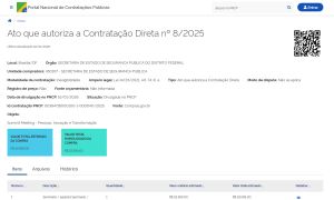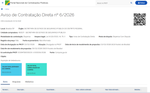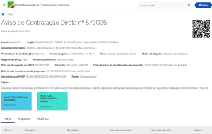 As licitações da Secretaria de Segurança Pública do DF (SSP/DF), na modalidade de Pregão Eletrônico, podem ser acompanhadas em tempo real no https://www.comprasgovernamentais.gov.br/index.php/consultass?layout=edit&id=726